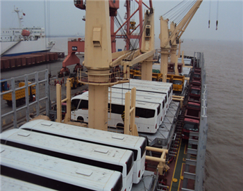 这些都是有动力源的客运车辆。按载装货物来分类,货主可以选择散货船或者滚装船运输。两都各具优点。散货船的运输在上价格比较低,滚装船不存在吊装,基本上是零货损,海运价格比散货船高。货物体积较大,综合分析我们会建议货主走散杂船,装在甲板上的巴士伞盖雨布。